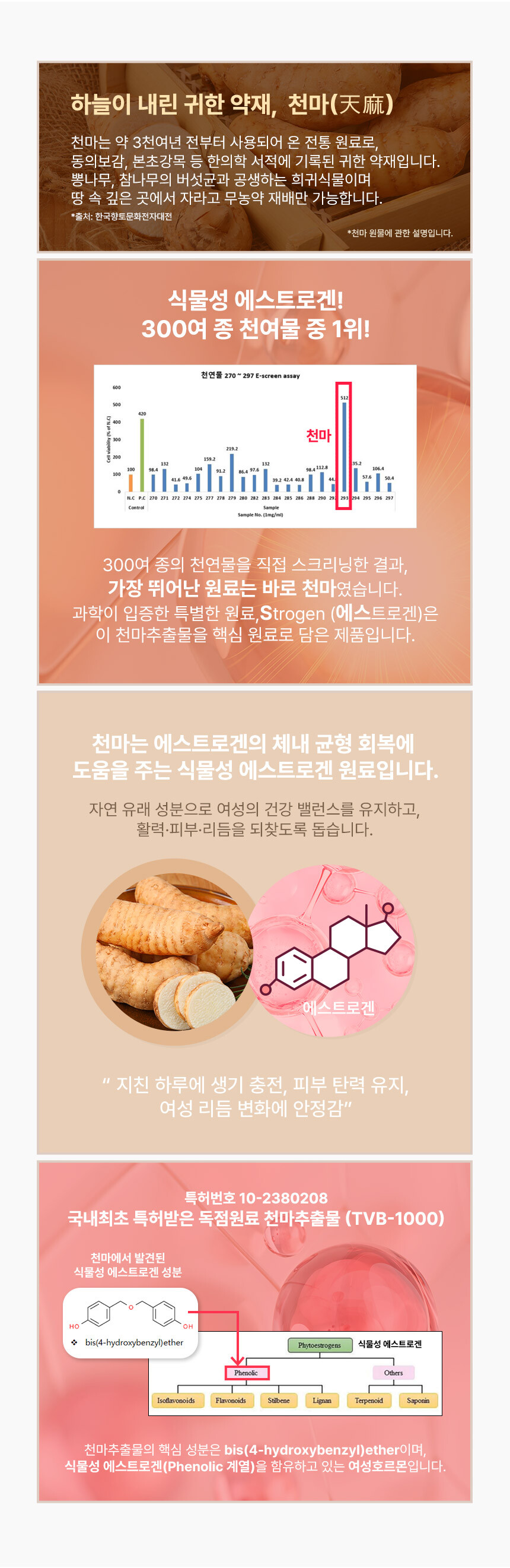 식물성 에스트로겐 영양제 보충제 국내최초 특허받은 독점원료 TVB-1000 천마추출물 은은한레몬맛